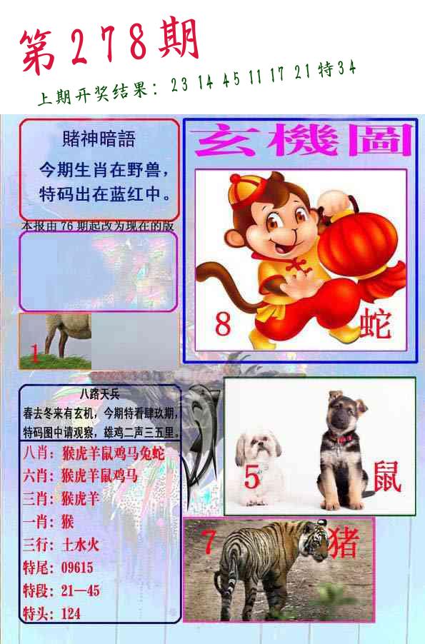 2025278期:⑧肖 | 狗鼠猴猪马牛龙兔 | ??????? |